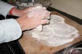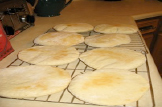 - Roll out each one to about 1/4 inch thick and 6 inches in diameter.