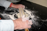 flour quick-rising yeast salt hot water (but not boiling) flour |